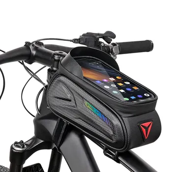 Bicycle Top Tube Bag EVA Waterproof Bike Beam Bag with Reflective Strip Bicycle Frame Pouch Cycling Bag for Mountain Road Bike