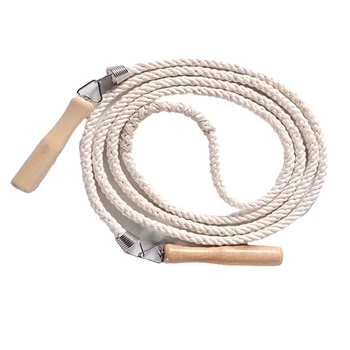 3m Wooden Handle Jump Rope Single Cotton Twine Jump Rope White Student Jump Rope for Practicing
