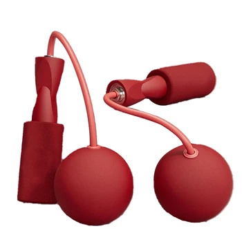 6.5cm Cordless Jump Rope with Heavy Ball Dual Bearing Silent Fitness Wire Rope for Indoor Sports Exercise Red